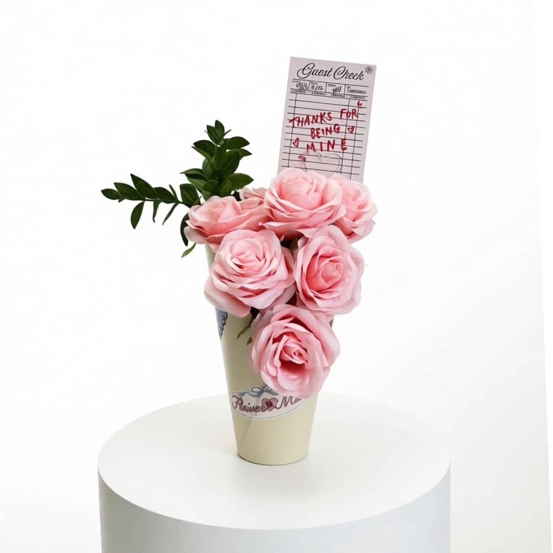 FM Rosie brings cheerful floral vibes in a vase-like silhouette, filled with colorful artificial blooms that stay pretty long after the day is over. Available in two sweet colorways, Cream and Pink, each one brightens the room with warmth, charm, and an instant celebratory feel.
