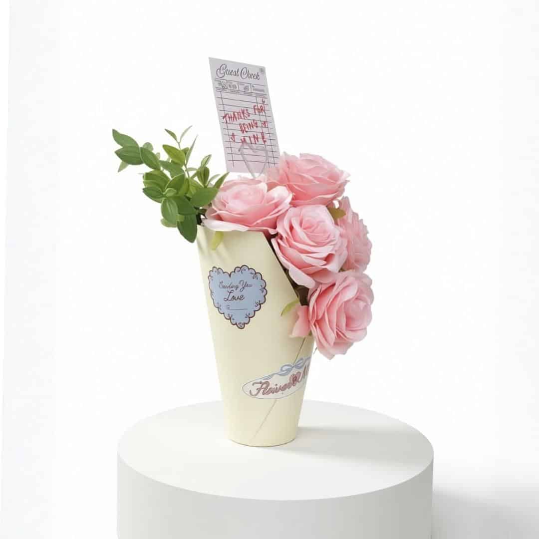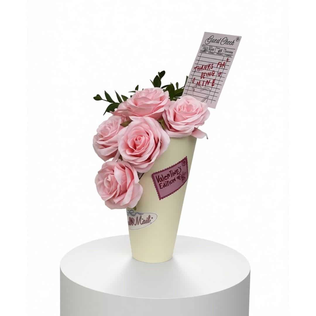 Vase-style Valentine flower gift with artificial blooms in cream or pink