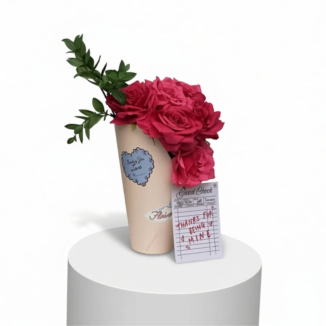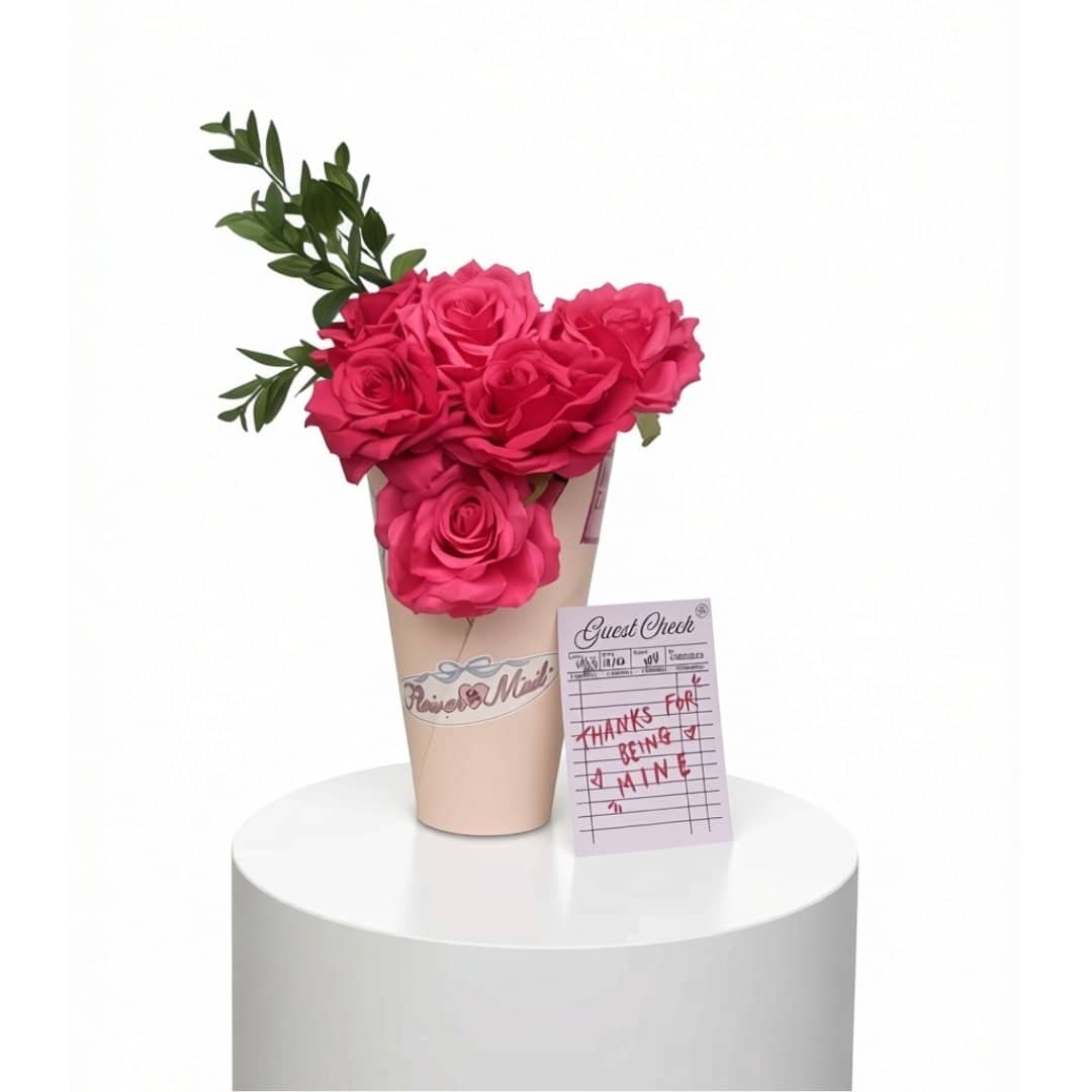 Includes a greeting card and themed stickers so you can personalize the message and make it extra romantic. Made with artificial flowers only, FM Rosie stays beautiful as a keepsake, because your gift should last longer than one dinner date.